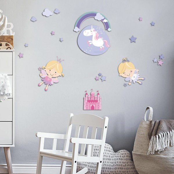 3 Levels - Happy Fairies - Wall Stickers 3D