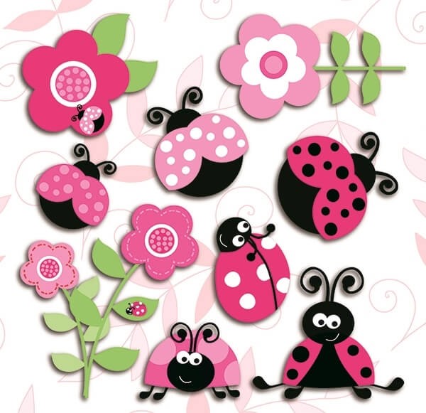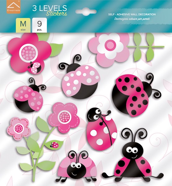 3 Levels - Pink Ladybugs - Wall Stickers 3D