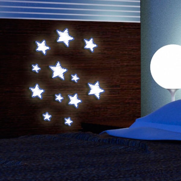 Note: Questa decorazione fosforescente è facile da applicare così come da rimuovere. Può essere applicata su pareti o su qualunque altra superficie liscia e pulita. E' realizzata in Vinile senza ftalati non tossico e adesivo acrilico a base d'acqua. La decorazione brilla al buio se precedentemente esposta a luce artificiale.