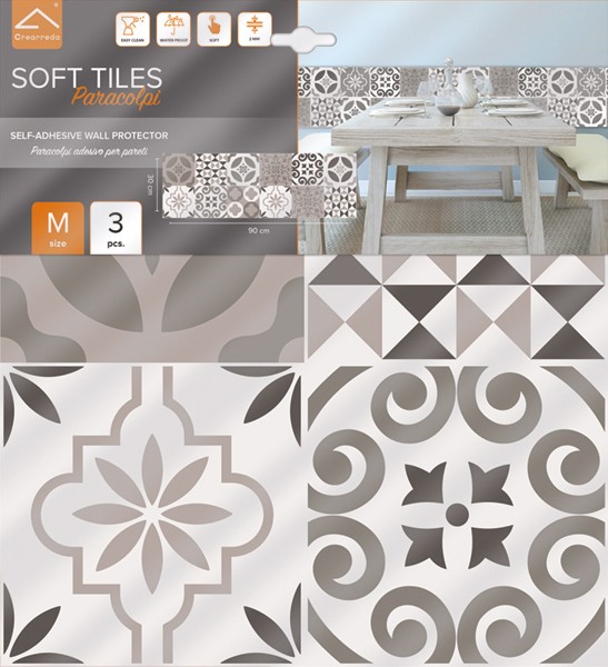 Note: Una soluzione pratica, colorata e molto "soffice" per decorare e proteggere le pareti di casa, di uffici, bar, ristoranti, asili e scuole. I Paracolpi Adesivi in Gomma si applicano in pochi secondi, si possono ritagliare e adattare ad ogni parete liscia e anche agli arredi. Perfetti anche come isolante termico, sono sicuri, resistenti e removibili. Confezioni da 3 pz. cm. 30x30 Spessore 2 mm. Componibili in verticale e orizzontale