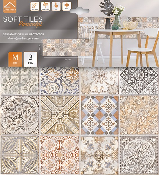 Note: Una soluzione pratica, colorata e molto "soffice" per decorare e proteggere le pareti di casa, di uffici, bar, ristoranti, asili e scuole. I Paracolpi Adesivi in Gomma si applicano in pochi secondi, si possono ritagliare e adattare ad ogni parete liscia e anche agli arredi. Perfetti anche come isolante termico, sono sicuri, resistenti e removibili. Confezioni da 3 pz. cm. 30x30 Spessore 2 mm. Componibili in verticale e orizzontale