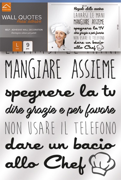 Note: Questo wall sticker maxi è facile da applicare così come da rimuovere. Può essere applicato su pareti o su qualunque altra superficie liscia e pulita. E' realizzato su vinile trasparente non tossico.