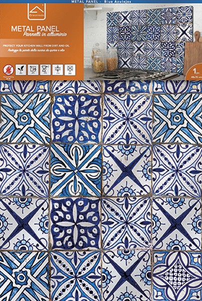 Paraschizzi in Alluminio Blue Azulejos 48x72 cm – Dekoidea