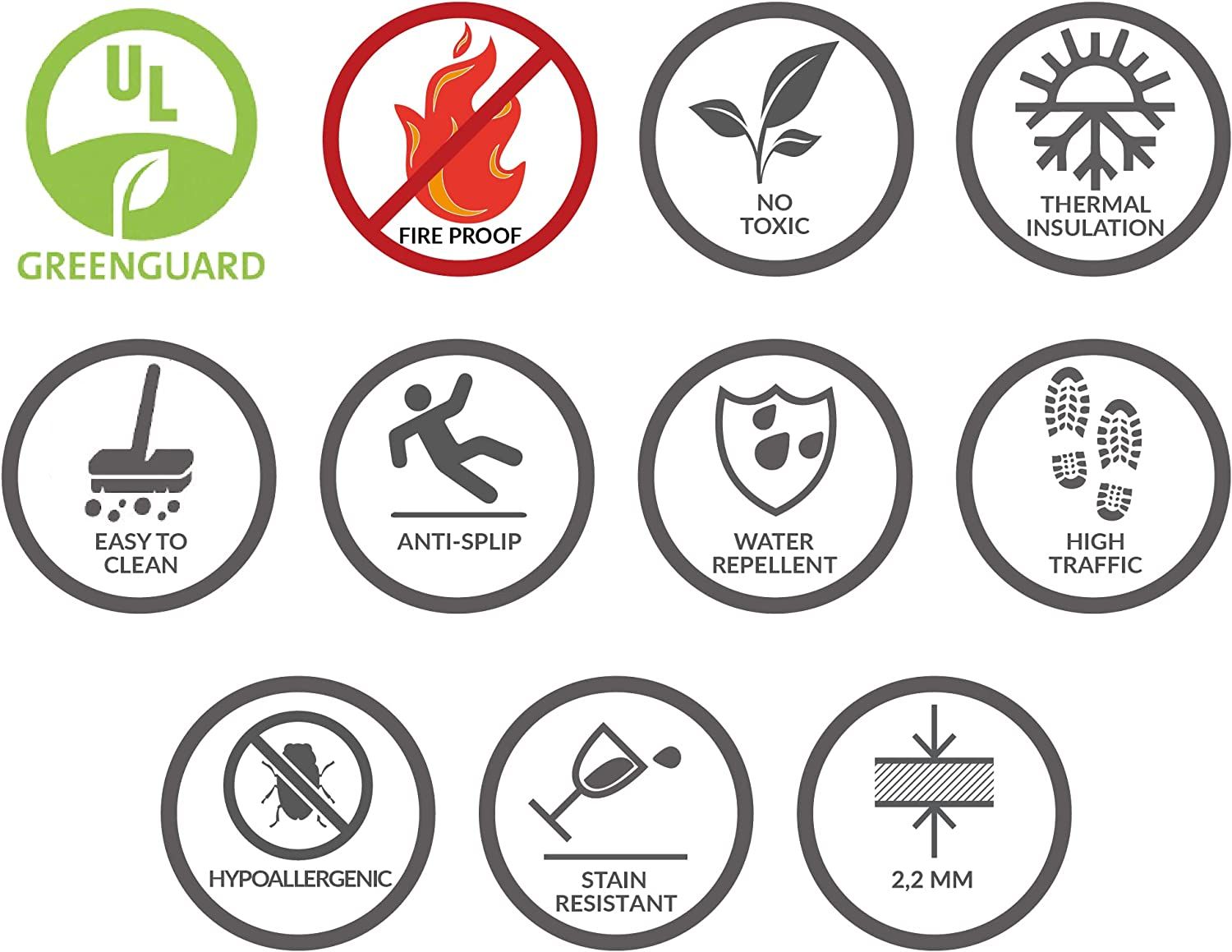💧 Impermeabile, anallergico, ignifugo, antiscivolo e antimacchia – Facile da pulire, sicuro e senza bisogno di adesivi